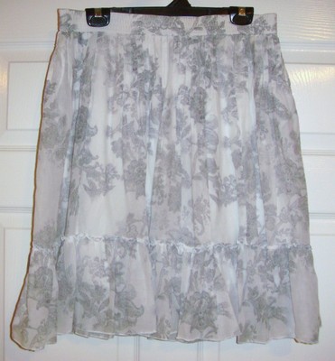 Where Can I Buy GAP Womens Medium White Gray Floral Silk Blend Cotton Lined Elastic Waist Skirt?